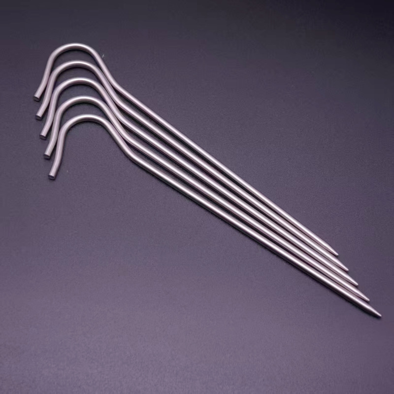 3mm Titanium Alloy Tenda Paku Tenda Titanium Berkemah Luar Ruangan Kuku Tenda Super Ringan Kanopi Langit Tanda Tanya Kait Tanah 7 Kata