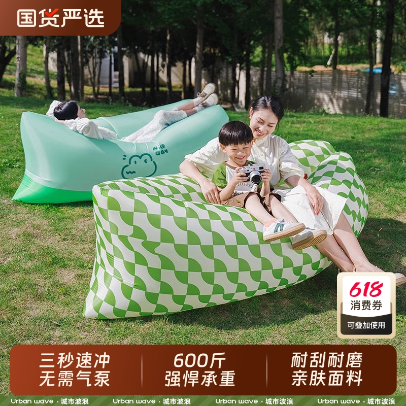 Kota Gelombang Outdoor Sofa Inflatable Festival Musik Orang Malas Sofa Udara Camping Tempat Tidur Berkemah Portabel Satu Orang