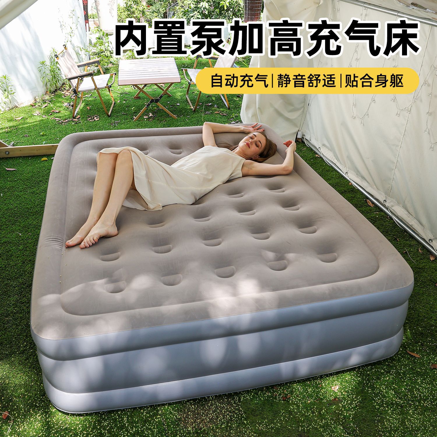 Tempat Tidur Inflatable PVC Tempat Tidur Inflatable Otomatis Bertanam Tempat Tidur Inflatable Rumah Tangga Tempat Tidur Inflatable Ditambah Tinggi Dua Orang untuk Berkemah Luar Ruangan