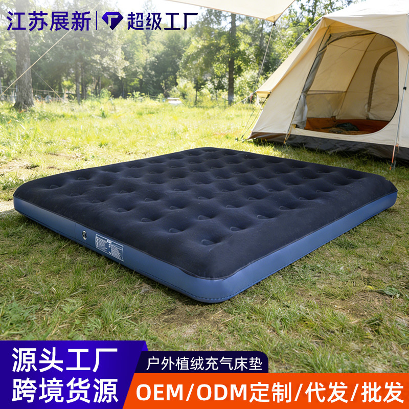 Matras tiup portabel luar ruangan, kasur angin lipat tunggal ganda, dipertebal, flocking, kasur tiup rumah tangga
