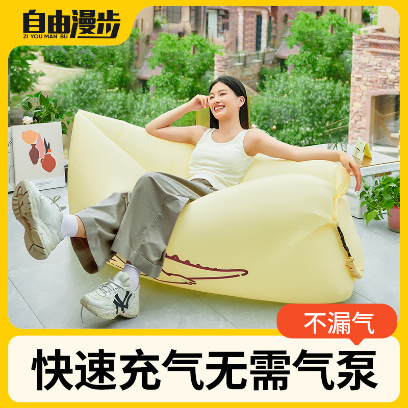 Tempat tidur luar piknik selebgram pompa portabel berkemah orang malas sofa tiup tempat tidur kasur udara lipat bebas udara