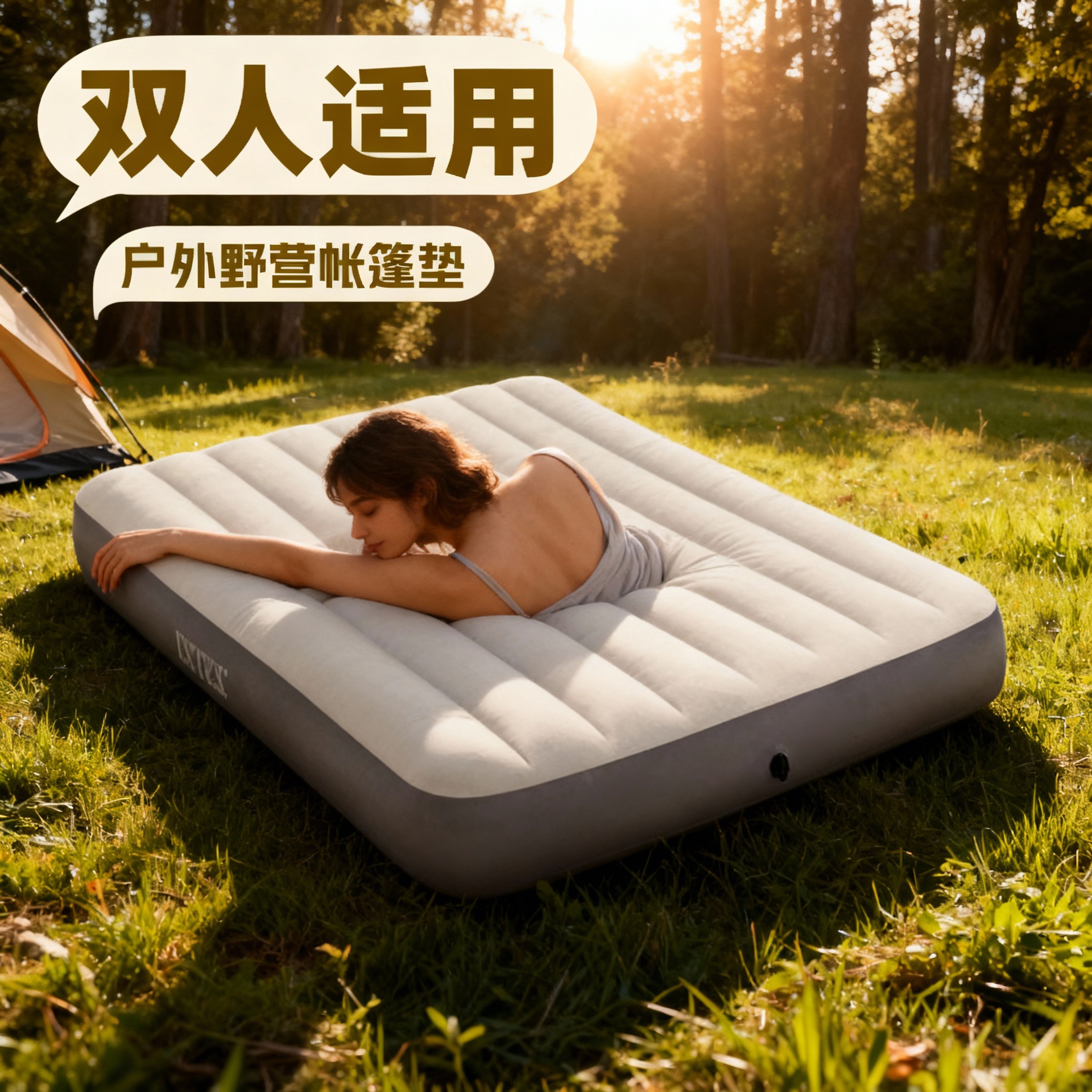 Kasur Tiup Ekstra Tebal Gaya Rumah Tangga Tenda Nyaman Luar Ruangan Bantal Udara Camping Bantal Lembut Bantalan Udara Dua Orang Bantalan Karet Plat Beludru