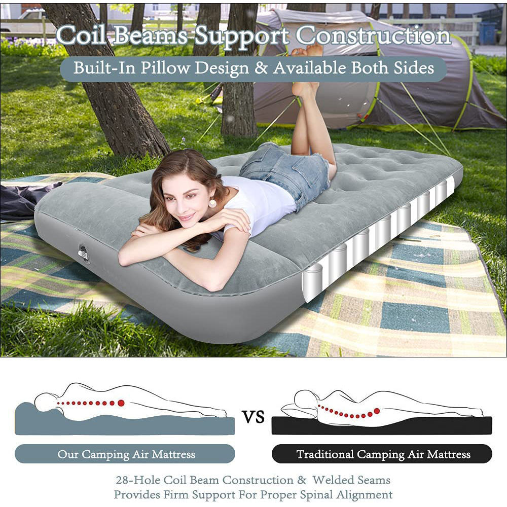 Kasur tiup berkemah luar ruangan, tempat tidur dua lapisan tunggal dengan bantal baterai pompa bawaan