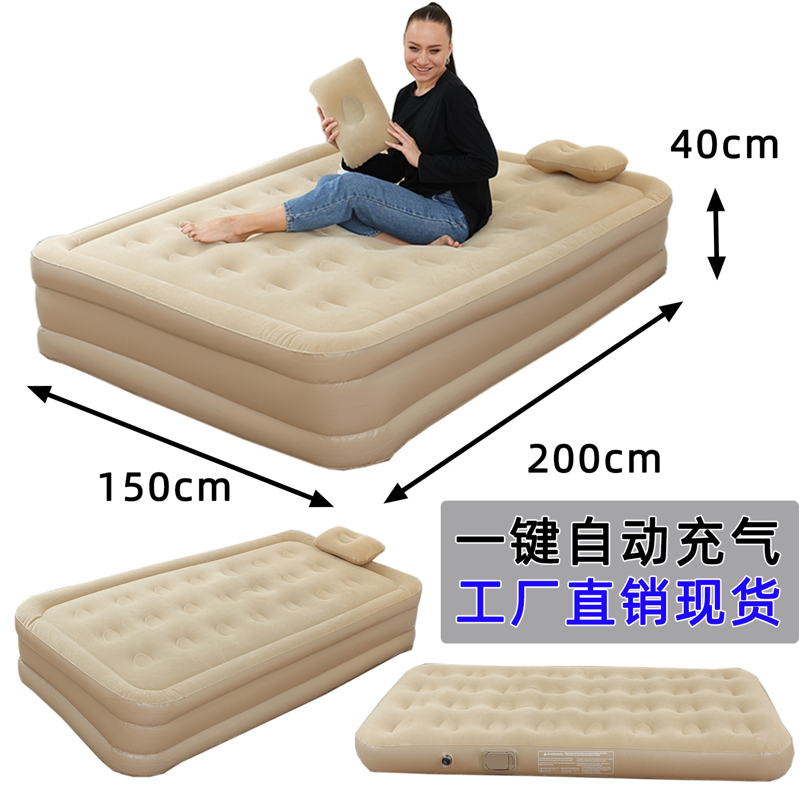 Kasur Tiup Tiga Orang Portabel Ekstra Tinggi Tebal Tenda Berkemah Tempat Tidur Tiup Otomatis Disikat Kasur Udara Di Luar Ruangan