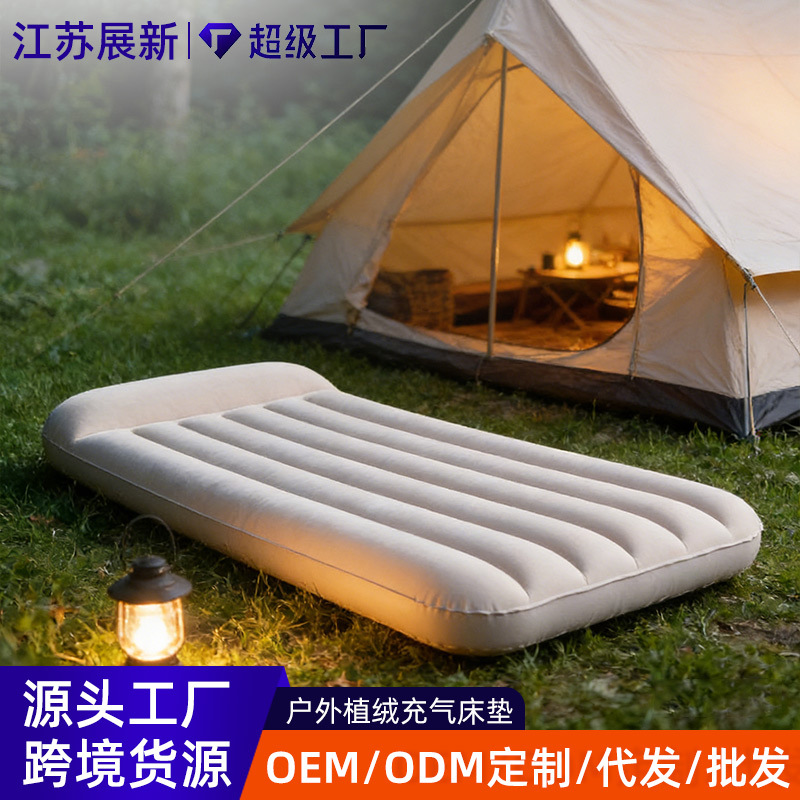 Kasur tiup portabel untuk berkemah, alas tidur tiup untuk bersantai di luar ruangan, alas tidur lipat tebal untuk berkemah, grosir portabel
