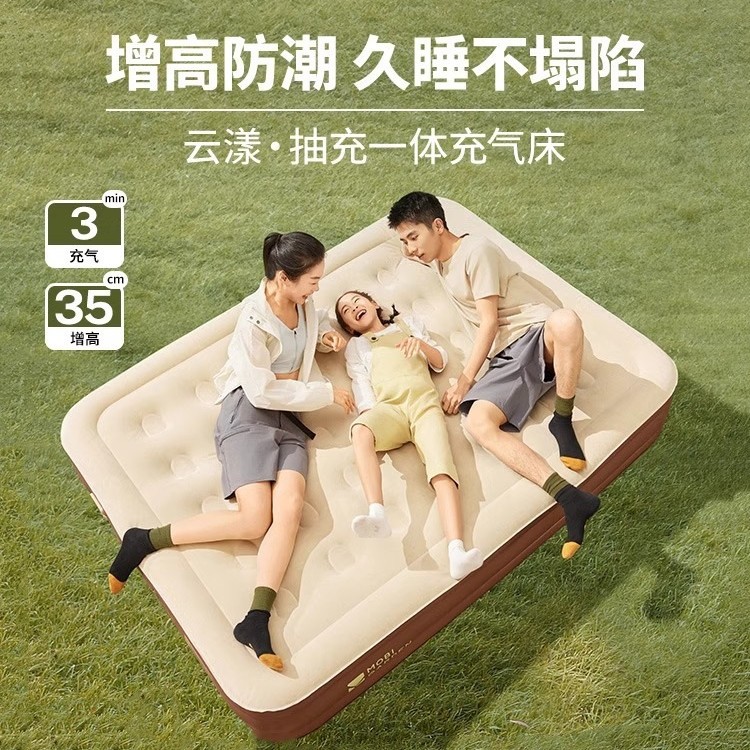 Mugao di matras tiup berkemah luar ruangan, matras tidur tiup tinggi tinggi, matras tidur dobel tunggal tahan kelembapan, matras tidur awan