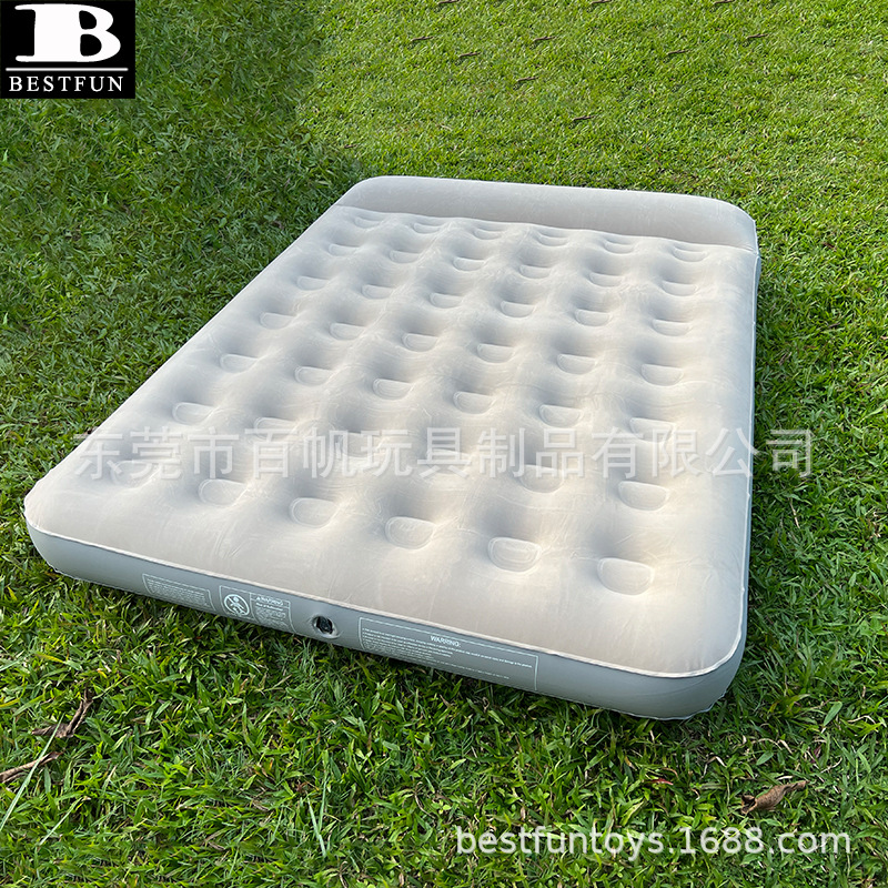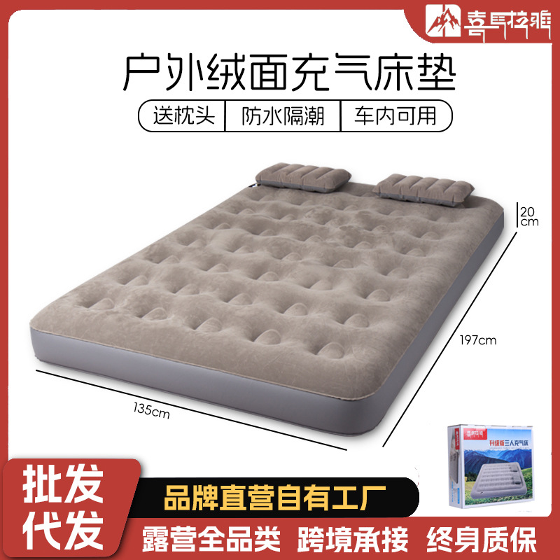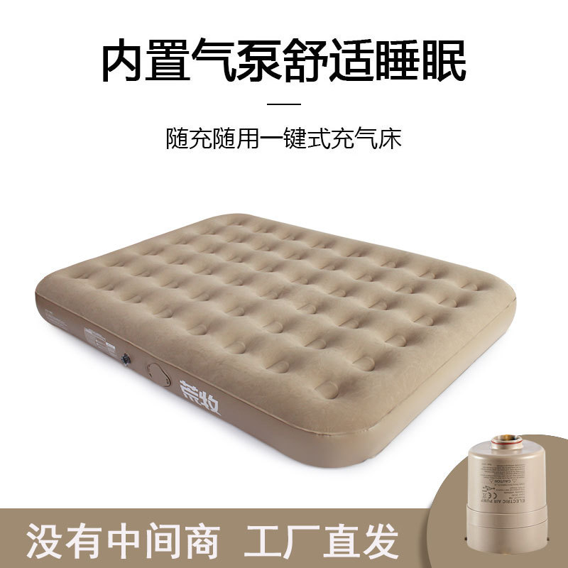 Beli pabrik ukuran queen flocking kasur tiup luar ruangan kasur udara ganda built-in bantal berkemah tempat tidur udara
