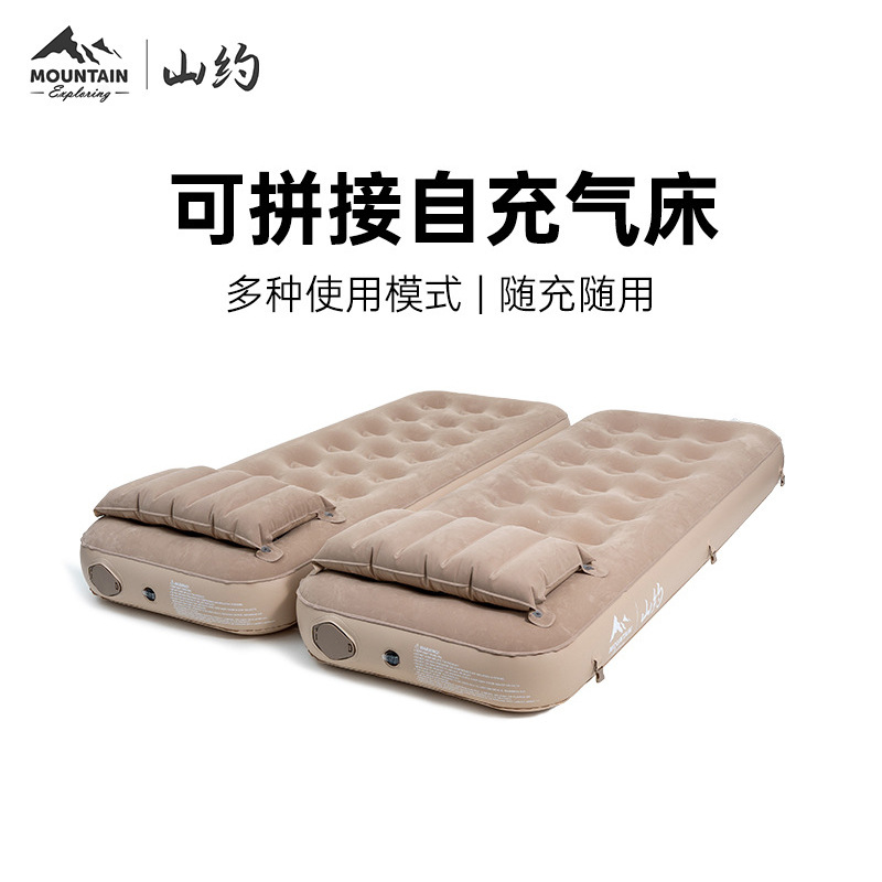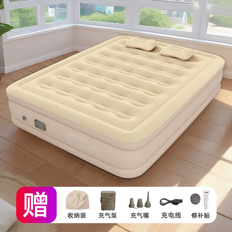 Flocking matras tiup dobel bawaan, pompa udara rumah luar ruangan berkemah alas tidur tunggal PVC tebal lintas batas panas
