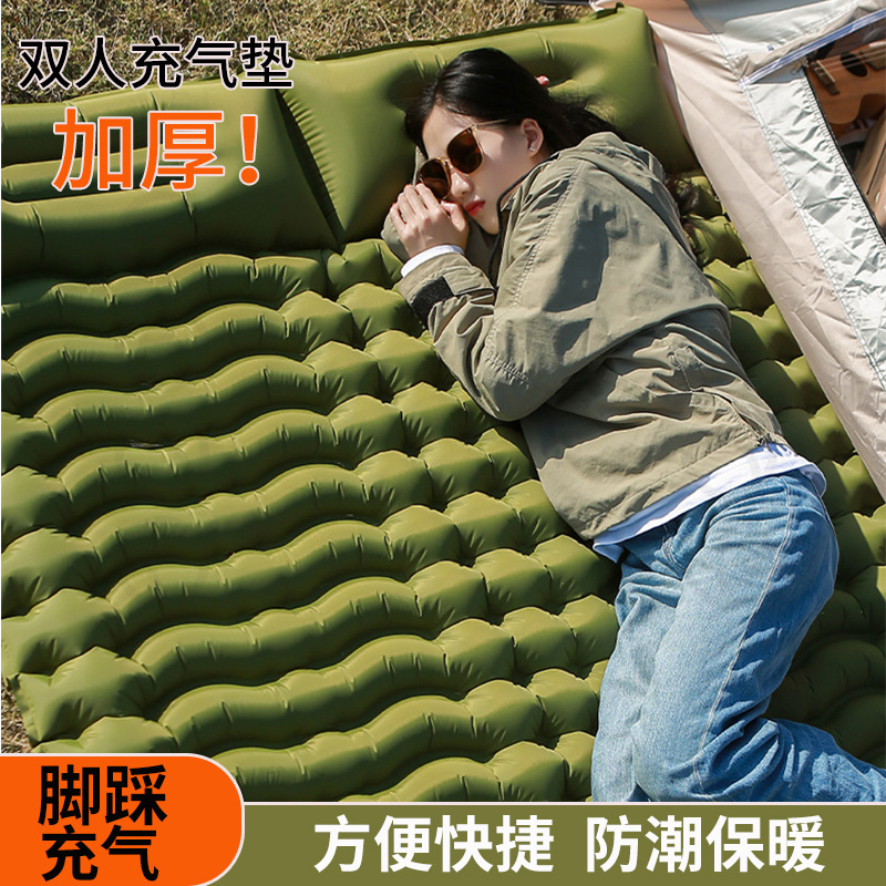 Pabrik langsung ganda ekstra besar luar ruangan berkemah spons anti-kelembaban kasur tiup dipertebal cahaya mewah nyaman bantal tiup