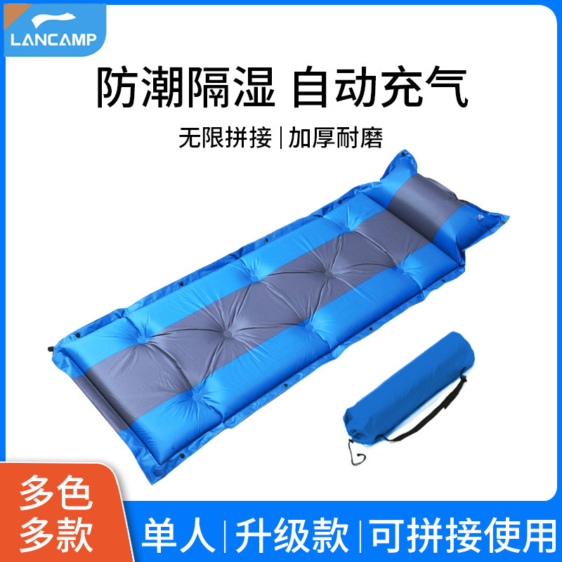 Lanye kasur tiup otomatis luar ruangan, tikar tidur berkemah, bantalan udara, tikar anti lembab untuk berkemah, luar ruangan