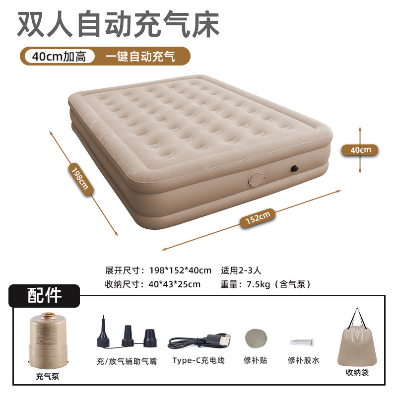 Kasur tiup otomatis, pompa lima generasi otomatis, kasur udara Kemah luar ruangan, kasur dobel tinggi, pompa lithium bawaan tunggal
