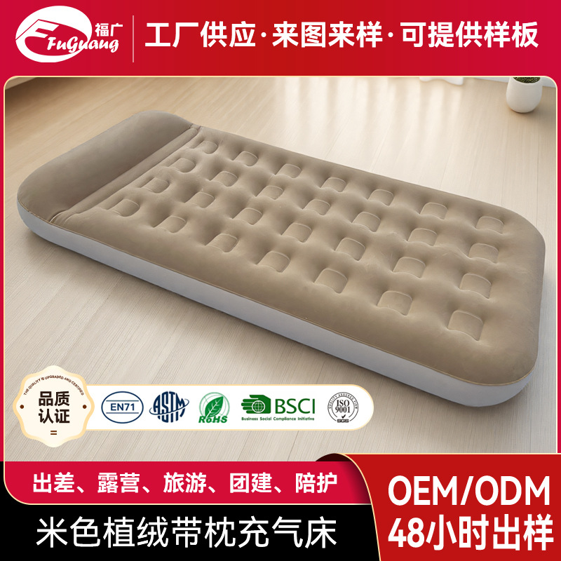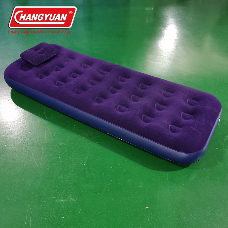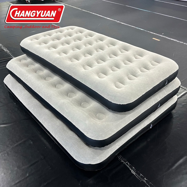Flocking matras tiup pvc luar ruangan, kasur ganda tiup produsen dalam stok