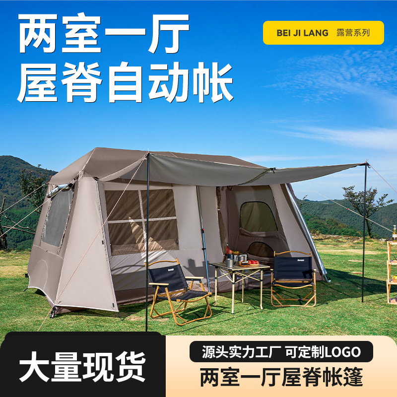 Tenda Luar Ruangan Punggungan Atap 13 Tenda Otomatis Tahan Hujan Peralatan Berkemah Berkemah Dua Kamar, Satu Ruang Lodge