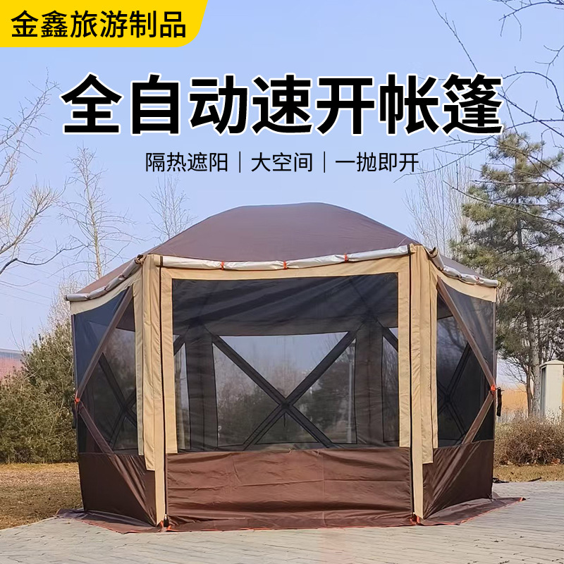 Hexagon Tenda Langit Besar Tenda Otomatis Tahan Angin dan Hujan Pernikahan Pantai Yurt Berkemah Luar Ruangan Tenda Besar
