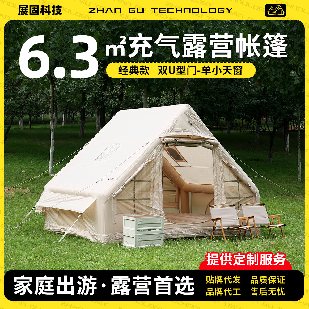 Berkemah tenda tiup otomatis untuk 3-4 orang, satu kamar, satu ruang tamu, tenda berkemah luar ruangan tahan hujan portabel, pabrik kustom