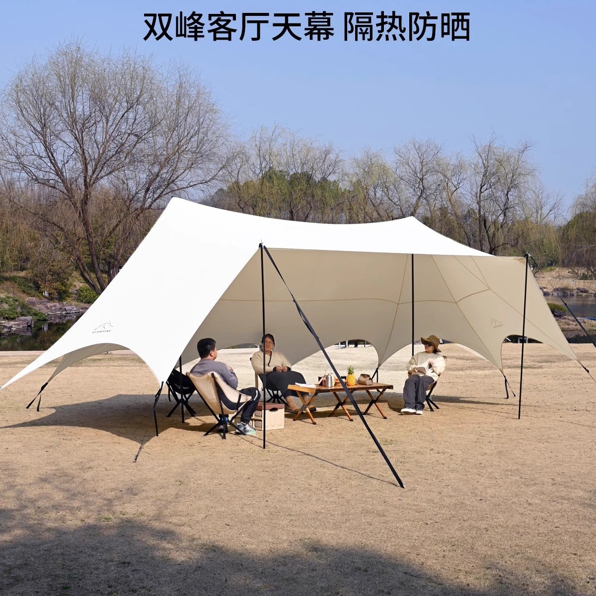 Tenda kanopi kubah puncak ganda ruang tamu menara besar luar ruangan tenda kanopi perlindungan matahari lem hitam kemah yang dipertebal