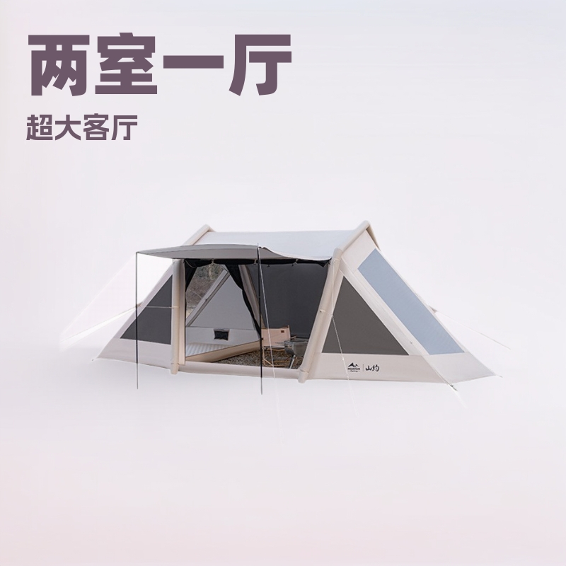 Tenda tiup otomatis dengan dua kamar tidur, satu ruang tamu, tanpa bangunan, kanopi luar ruangan, dua dalam satu peralatan berkemah