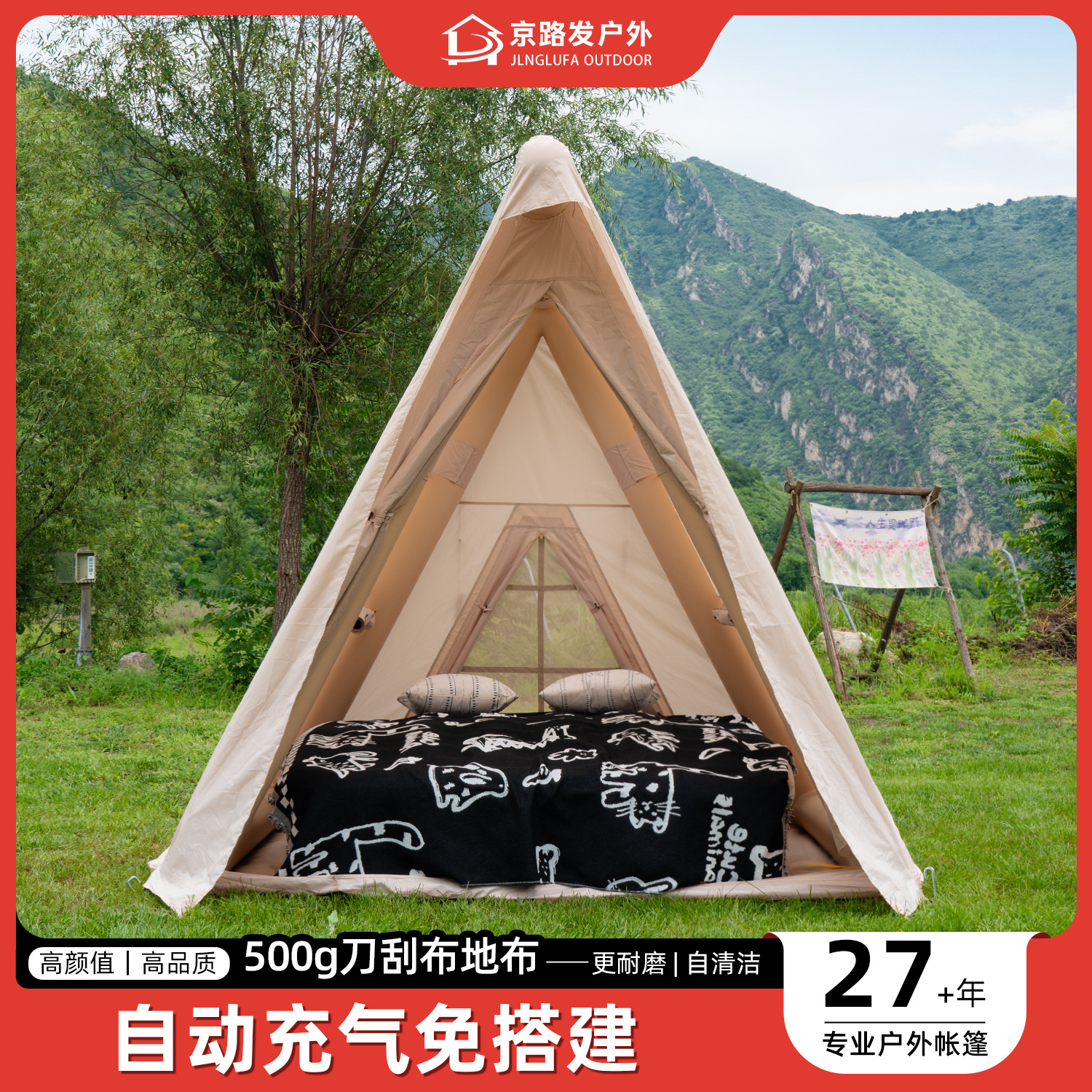 Jingcheng Haus segitiga atap tenda tiup luar ruangan terbuka terbuka perkemahan semalam tempat penampungan tiup portabel