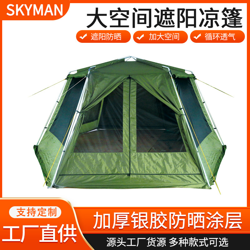 Tenda heksagonal otomatis, perlengkapan berkemah luar ruangan tebal tahan hujan tahan matahari ruang besar tahan matahari kanopi keren