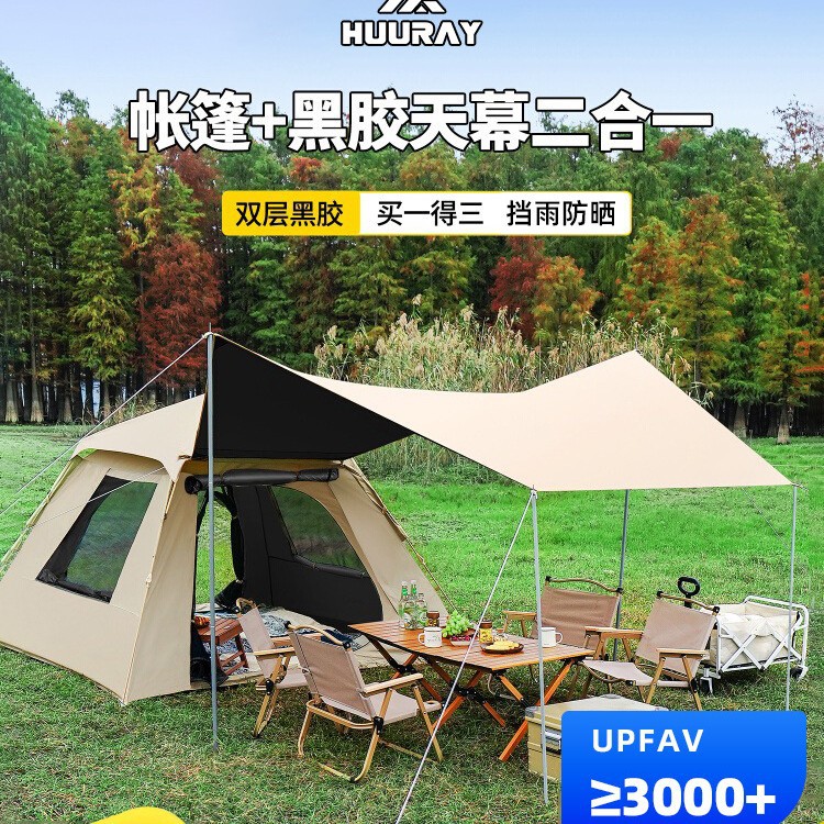 Tenda Pelindung Terik Matahari Lem Hitam Tenda Luar Ruangan Tahan Angin dan Hujan Berkemah Peralatan Berkemah Meja Lipat Kursi