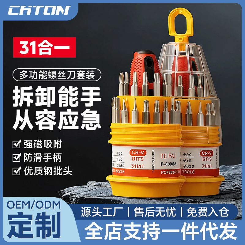 Set obeng CHTON Chuantuo 31-in-1 dengan baja karbon berinsulasi magnetik, set alat 46 buah