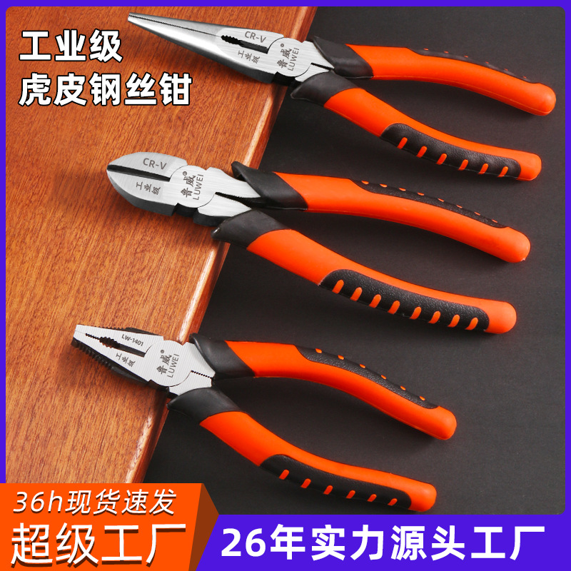 鲁威工具8寸虎皮钢丝钳带包装尖嘴钳防滑斜口钳老虎钳子6寸做钳