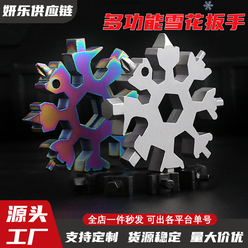 Kunci pas kepingan salju portabel multifungsi, kunci pas obeng rumah tangga 18 dalam 1 kepingan salju oktagonal