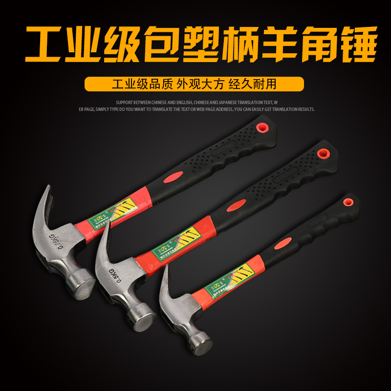跨境批发五金工具防滑吸钉包塑柄羊角锤建筑起钉锤羊角锤子