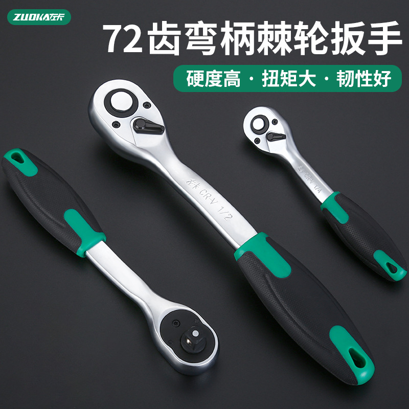 Kunci pas soket, 72-gigi, kunci pas terbang ratchet pegangan melengkung, kunci pas soket besar, sedang dan kecil, kunci pas ratchet