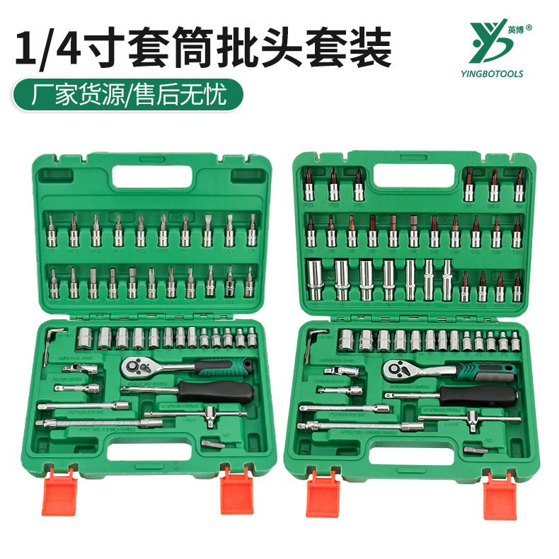 Set alat perbaikan mobil 53 buah dengan kombinasi soket ekstensi, kunci sekrup, ratchet torsi, kotak peralatan perbaikan mobil multifungsi.
