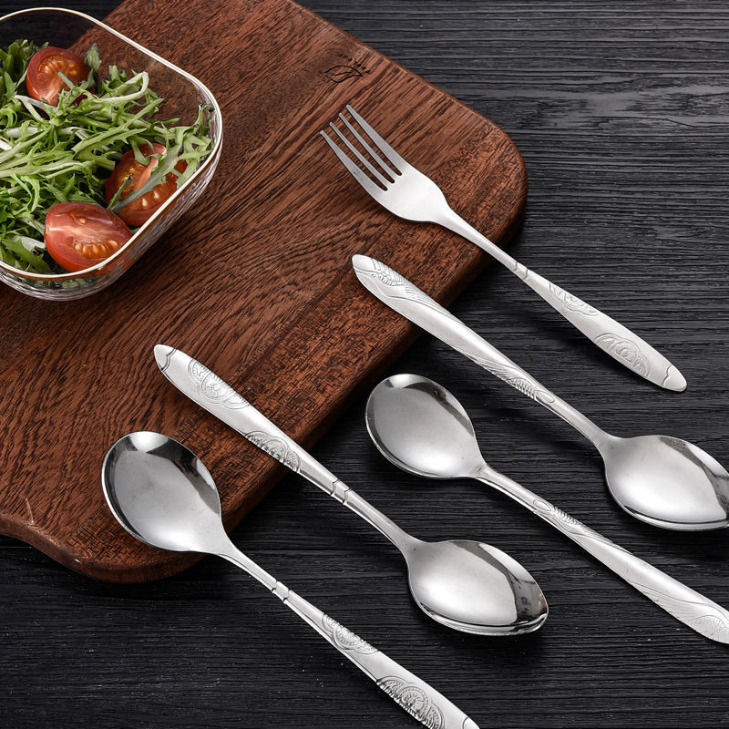1小2号仙鹤蝴蝶半边花尖头圆叉子勺不锈钢加厚餐具汤饭调羹匙长柄