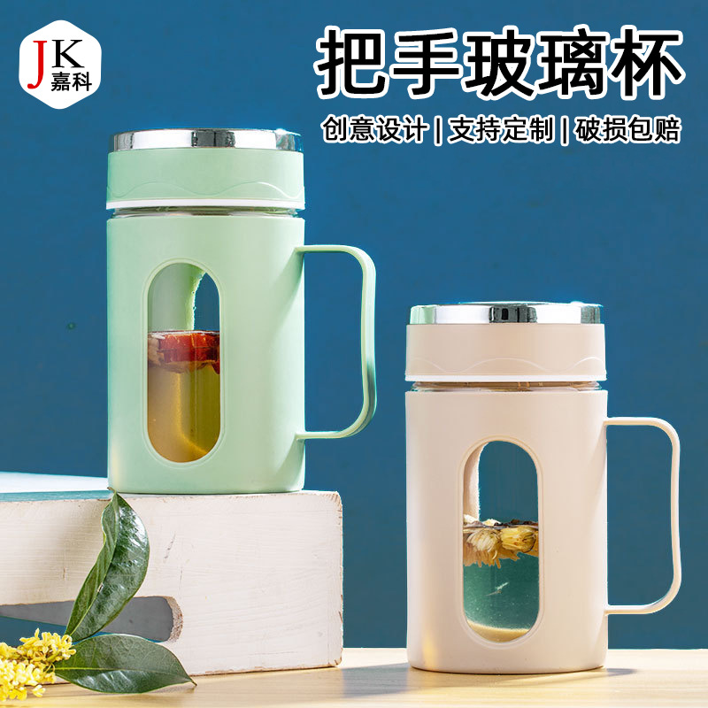 批发把手商务杯双层玻璃水杯印字logo隔热杯子办公室水杯车载茶杯
