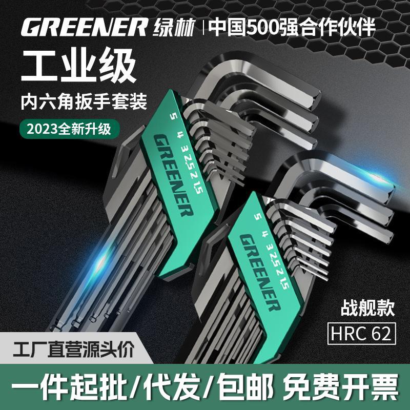 Setelan kunci pas heksagon hutan hijau, kunci pas heksagonal kombinasi otomatis, dalaman tunggal, alat obeng universal enam sudut