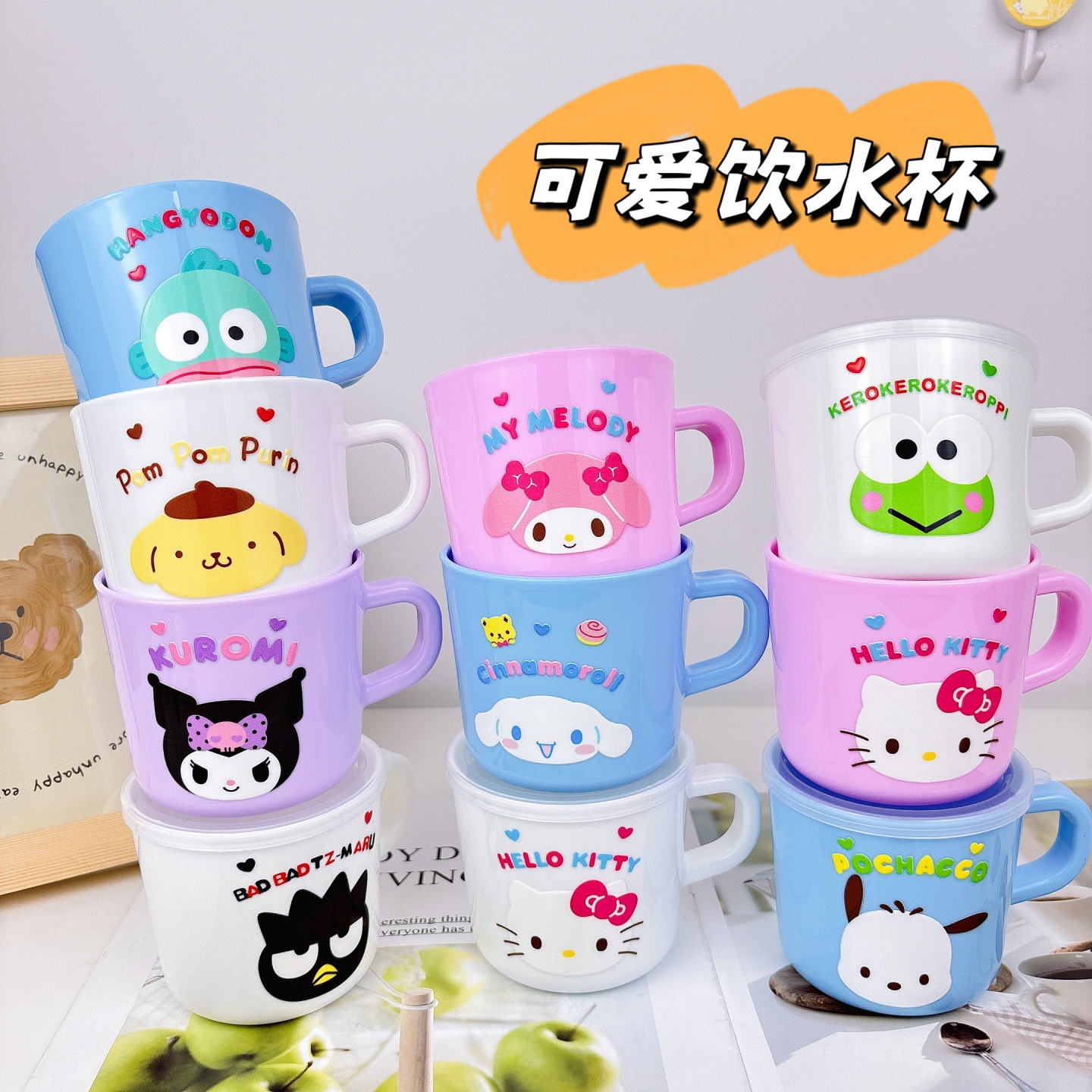 Cangkir Susu Anak-anak Model Baru Cangkir Minum Makaron Kulomi dengan Gagang Tutup Lucu Cangkir Cuci Gigi Anak-anak