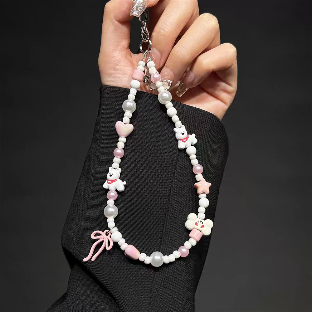 原创西高地小狗少女ins蝴蝶结串珠ccd手机链相机挂绳diy链条挂件