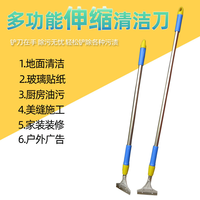 Multifungsi teleskopik sekop pembersih pisau membersihkan dan scraping ubin menebal sekop kepala batang baja tahan karat dengan selubung pisau