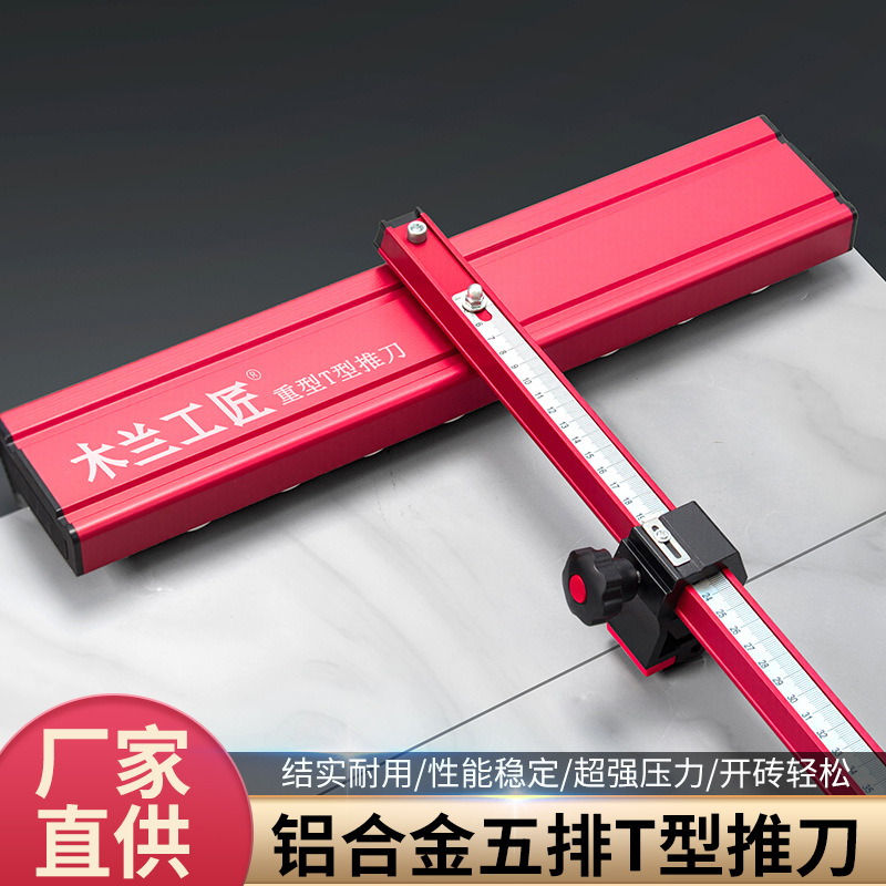 Pisau dorong tipe-T portabel baru dengan lima baris roda tebal, roda pisau 22mm untuk memotong lempengan batu, keramik penuh, kaca, dan ubin.