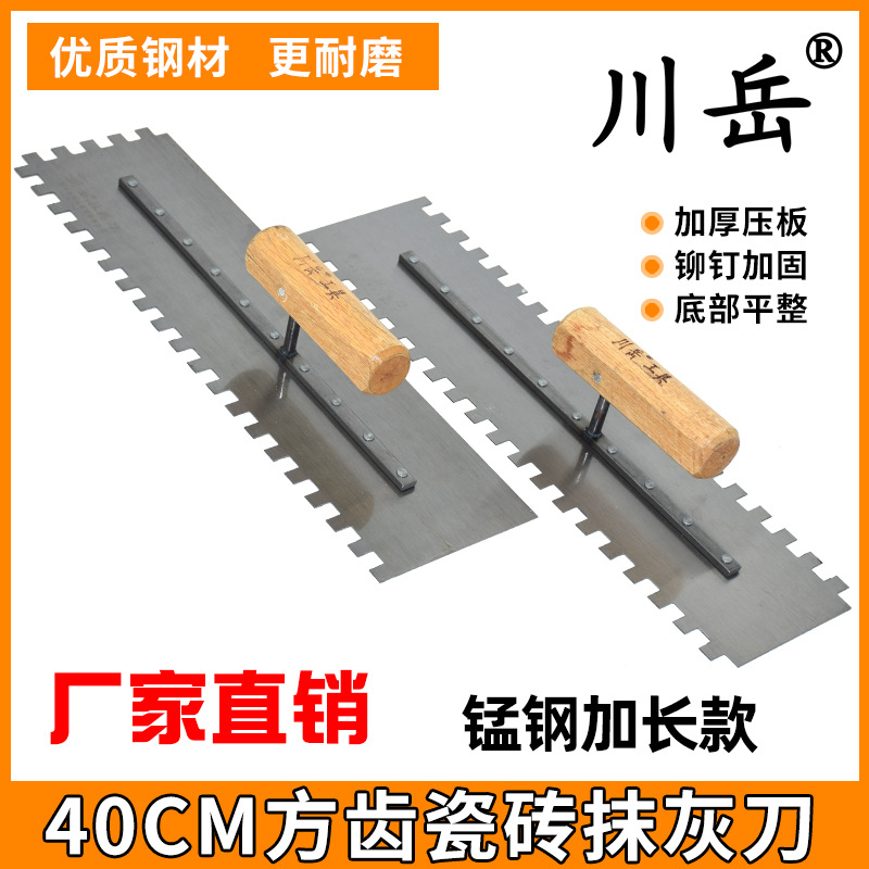Chuanyue pisau plester gigi persegi baja mangan yang diperpanjang dengan sekop ubin gigi sekop bergerigi alat papan tanah liat batu