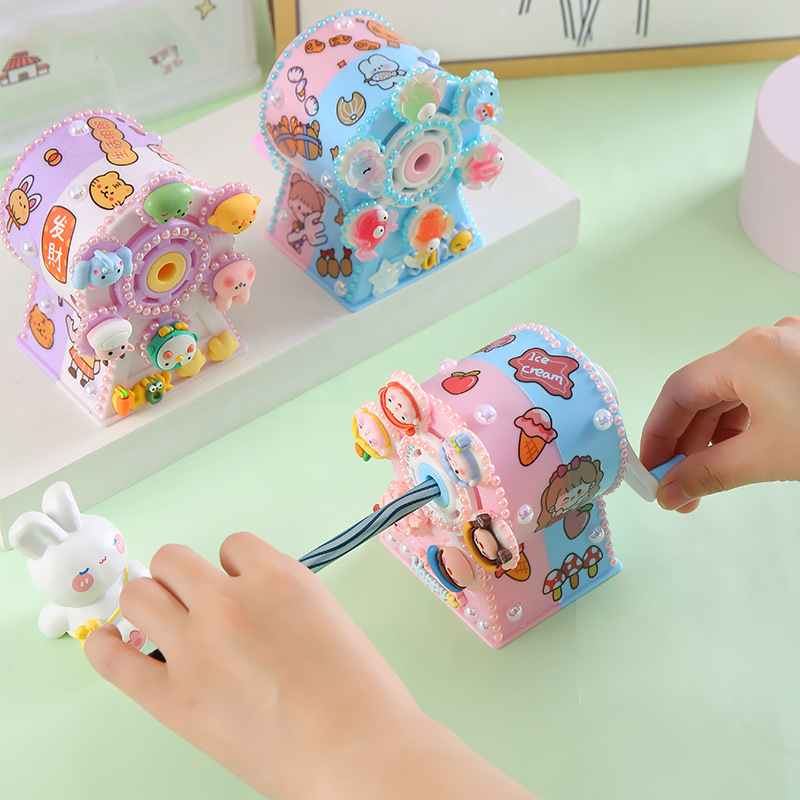 Rautan pensil bianglala, peraut pensil sekolah dasar, hadiah harian anak kartun buatan tangan, paket bahan pasta diy