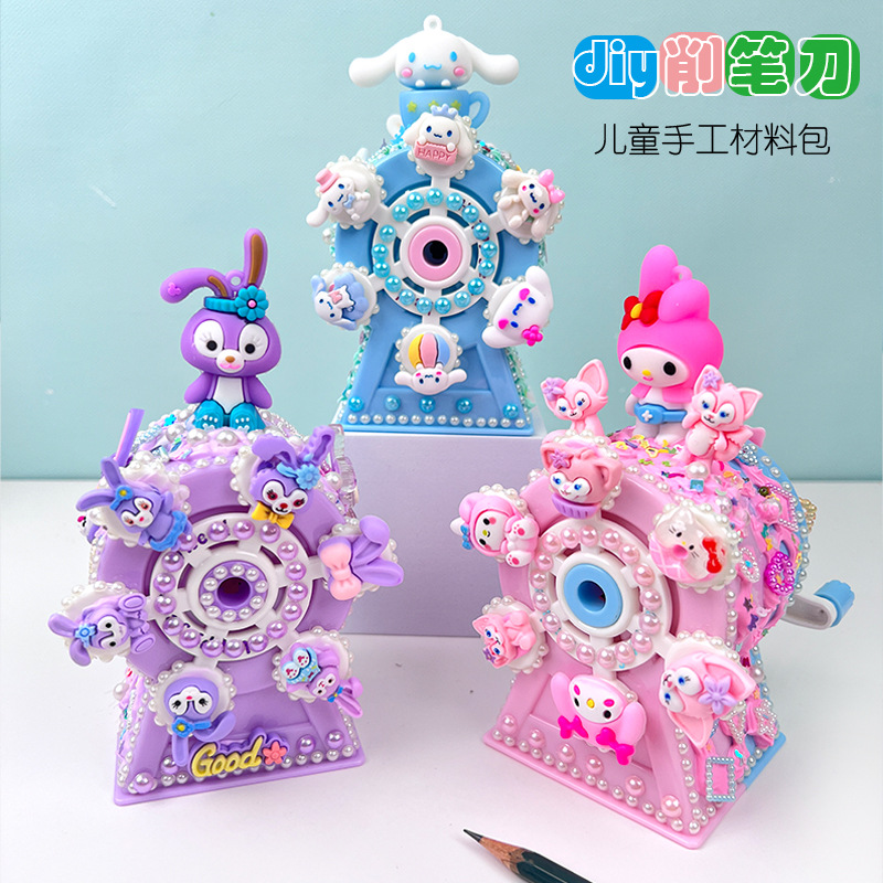 Rautan pensil bianglala, peraut pensil sekolah dasar, hadiah harian anak kartun buatan tangan, paket bahan pasta diy