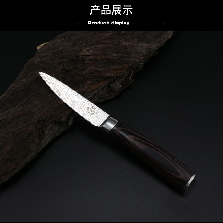 Pisau Buah Pola Damaskus Tebal Pisau Pengupas Komersial Multifungsi Kelas Atas Portabel Stainless Steel Rumah Tangga