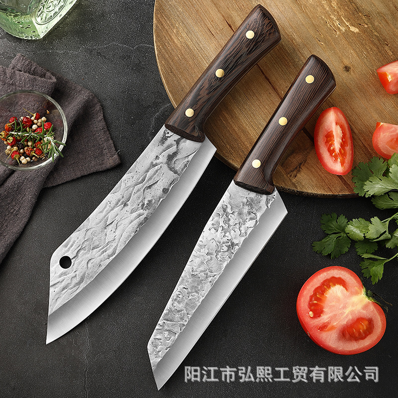 Pisau daging pola palu tempa buatan tangan pisau daging sayap ayam pegangan kayu pisau pengupas daging pabrik daging pisau pemotong daging pisau Yangjiang grosir