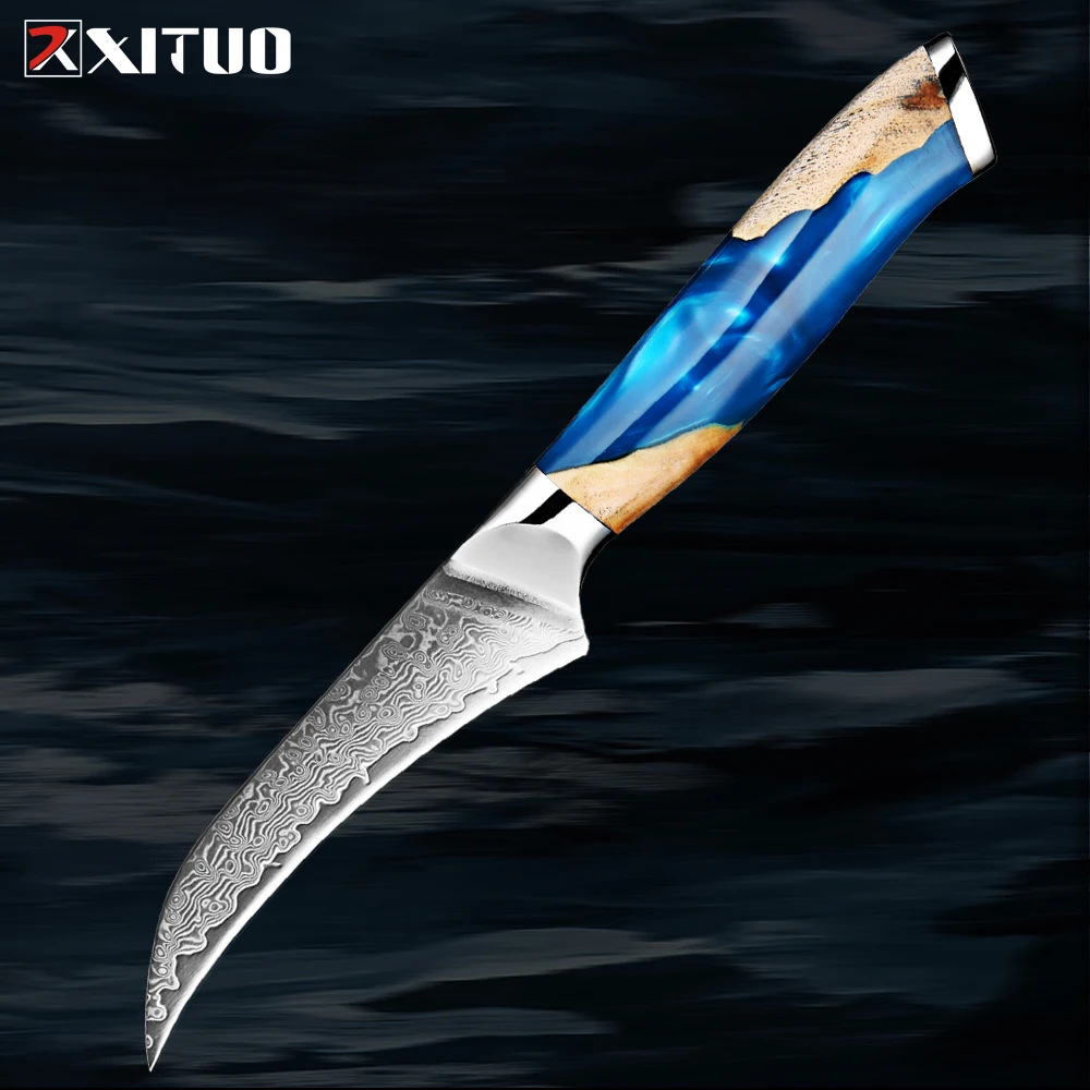 Damaskus pisau buah baja pisau rumah tangga pisau buah melon pengupas pengupas pengupas pisau melengkung pisau buah