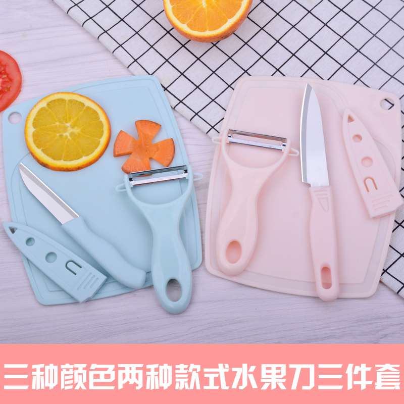Setelan pisau buah pengupas pisau melon gunting rumah tangga pengupas baja tahan karat tiga bagian pengiriman hadiah