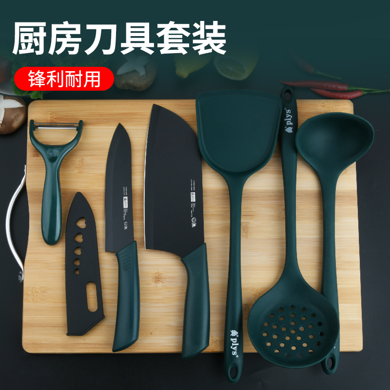 Pisau dapur set lengkap perdagangan luar negeri pisau dapur papan pemotong makanan pelengkap pisau pengiris dua dalam satu silikon sup bocor hadiah pengiriman