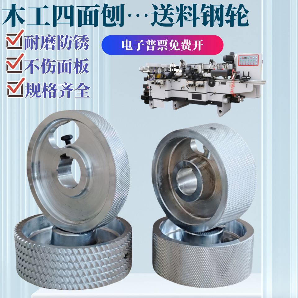 Roda baja mewah Qingcheng empat sisi, roda tekan, roda pengumpan, roda besi, roda gigi, alur pasak, suku cadang mesin pertukangan kayu enam lubang.