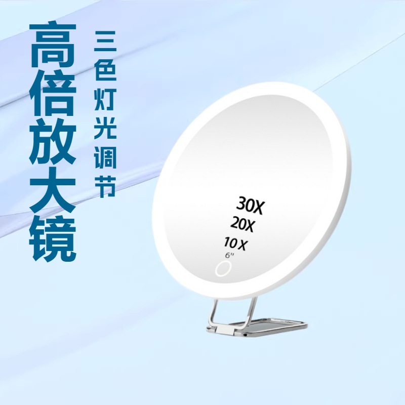 Cermin Rias Genggam Dengan Braket Lampu LED Model Pengisian Daya 10x 20x 30x 40x Cermin Rias Perbesar untuk Menghilang Komedo