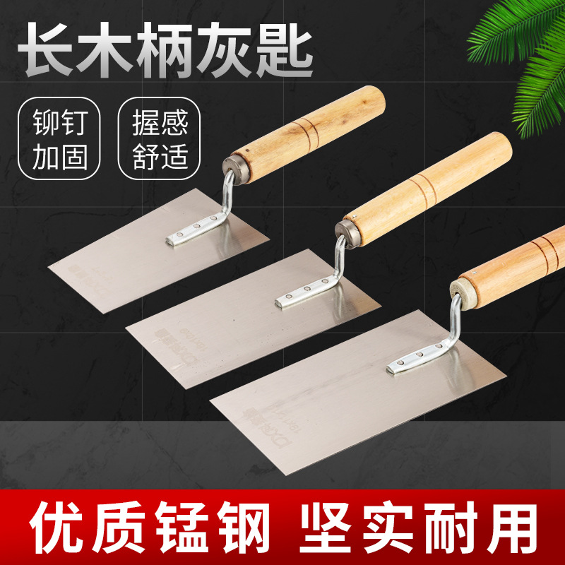 Baja mangan sekop kecil spatula sendok abu pegangan kayu pisau Plaster ubin batu pegangan plastik sekop datar runcing
