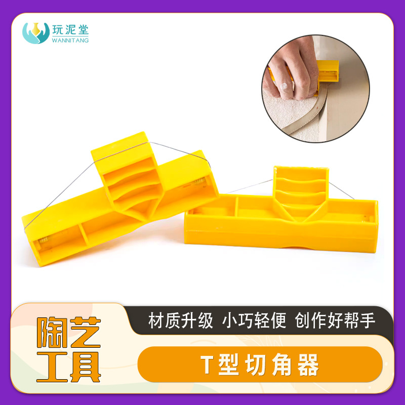 Alat keramik tipe T pemotong sudut miring, gagang plastik baja tahan karat pemotong kawat lumpur papan bermain lumpur
