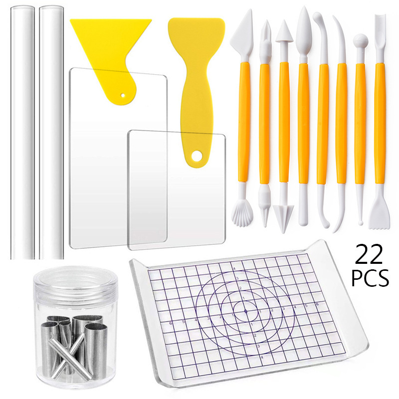 Alat Keramik Lintas Batas 22 Set Papan Tanah Liat Tipe U Tipe Akrikli Potong Cetakan Tongkat Penggosok